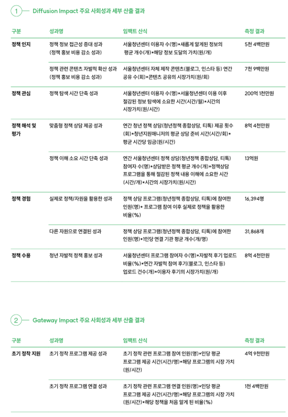 「서울청년센터 사회성과 측정 리포트」 자세한 내용은 서울광역청년센터 누리집(www.smyc.kr)에서 확인 할 수 있다.