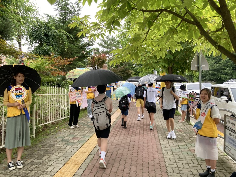 [남양주시 세계타임즈=송민수 기자] 경기도구리남양주교육청 화봉초등학교(교장 서동연)는 7월 2일, 학부모 30여 명이 참여한 가운데 학교 폭력 예방을 위한 캠페인을 진행했다. 학부모들은 교문 앞에서 미리 준비한 피켓을 들고 등교하는 학생들을 맞이하며 학교폭력 없는 건강한 학교 문화를 조성하기 위한 활동을 펼쳤다.