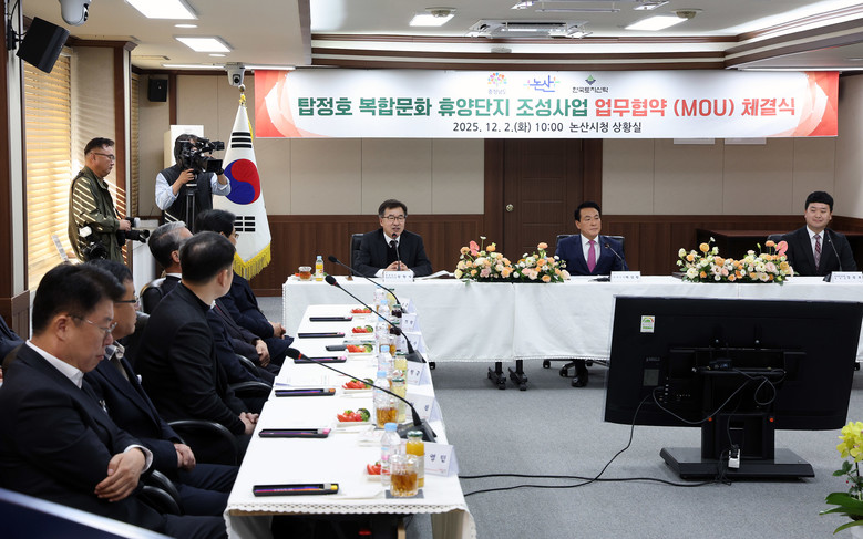 도는 2일 논산시청 상황실에서 전형식 도 정무부지사, 백성현 논산시장, 김정호 ㈜한국토지신탁 신탁사업2본부장이 ‘탑정호 복합문화 휴양단지 조성’ 업무협약을 체결했다고 밝혔다.