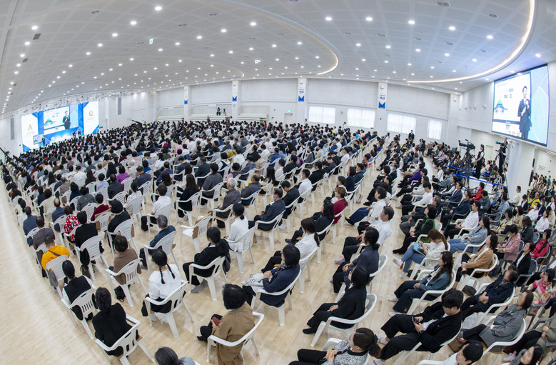 지난 20일 부산야고보지파와 안드레지파가 경남 창원에서 열린 부산·경남 앙코르 신천지 전도 대성회를 개최한 가운데 성창호 지파장의 경연을 듣고 있는 참석자들의 모습.