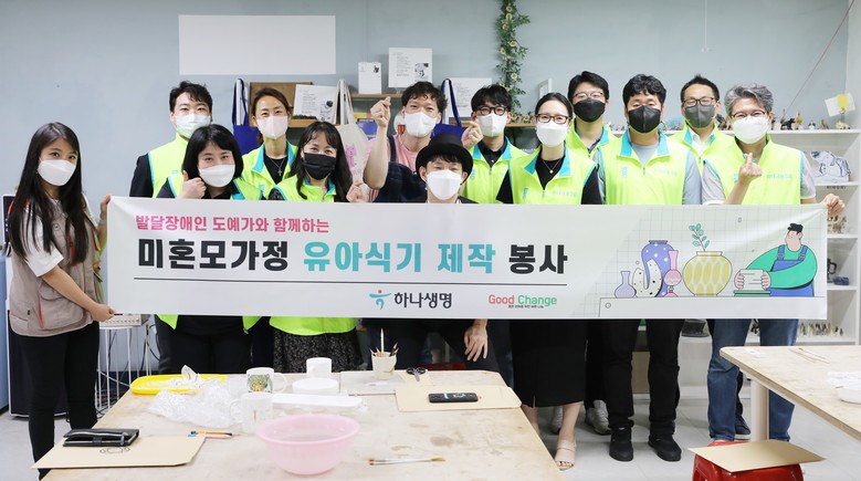 이번 봉사활동은 발달장애인 아티스트를 육성, 지원하는 사회적 기업인 스프링샤인(대표 김종수)과 함께 진행되었다. 발달장애인 도예가의 체험 수업을 통해 하나생명 임직원들이 유아식기를 빚었는데, 이후 2~3주간의 건조와 재벌 과정을 거쳐 식기가 완성되면 여름에 필요한 육아용품과 함께 행복상자에 담아 구세군 두리홈 미혼모 시설에 전달할 예정이다.