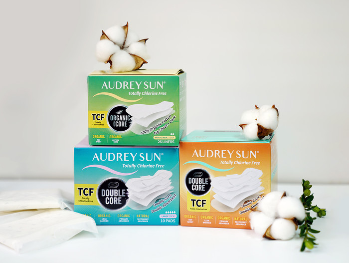 이번에 새롭게 출시한 ‘오드리선 TCF 더블코어’는 친환경 제조 공법을 적용한 천연 소재를 방수층을 제외한 모든 부분에 사용해 안전성을 강화한 친환경 생리대다. 기존의 유기농을 표방하는 제품과 달리 피부에 직접 닿는 탑시트뿐 아니라 착용시 피부와 접촉이 잦은 샘방지 기능이 있는 사이드개더와 날개, 1차 흡수체까지 모두 유기농 순면을 적용한 유기농 생리대다.