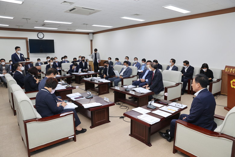 시의회 확대의장단은 이날 예정에 없었던 긴급회의를 열어 「대구광역시 행정기구 및 정원 조례 전부개정조례안」을 비롯한 대구광역시 공공기관 구조혁신 관련 조례 8건과 대구시 슬로건 변경에 관련된 개정 조례안 등에 대해 대구시 행정부시장과 소관 실·국장들로부터 사전 설명을 들었다.