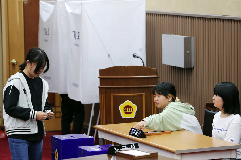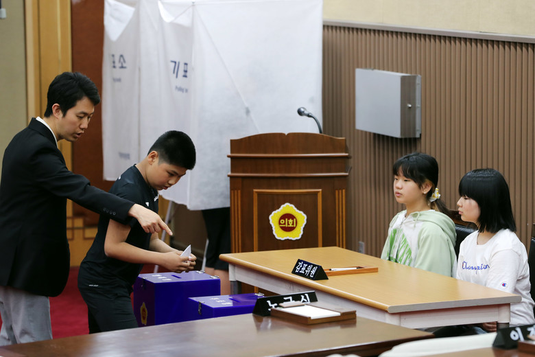금가초교 학생들은 무기명 투표를 통해 청소년 의장을 선출하고 ‘학생 치장의 자유 보장 조례안’과 ‘학교 동아리 활성화 건의안’, ‘학교 내 매점 설치 건의안’ 등 3건의 안건을 심의‧의결했다.