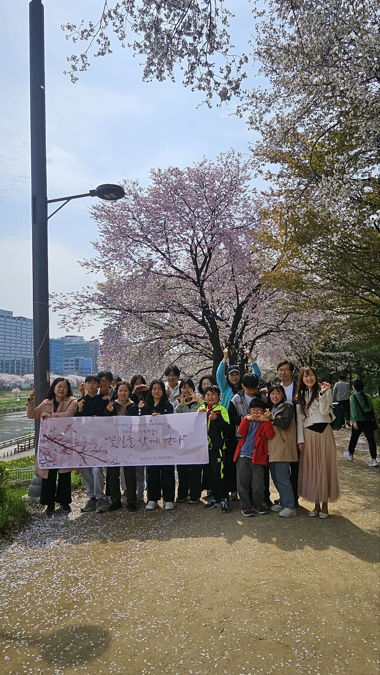 [광명시 세계타임즈=송민수 기자] 하안중학교(교장 민인순)는 2025년 4월 12일(토)에 부모와 자녀가 함께하는 “꽃길을 함께 걷다” 행사를 개최하였다. 가정 연계 인성교육의 실천적 활동으로서 부모와 자녀가 함께하는 체험을 통해 가정 내 소통과 공감의 장을 마련하고, 존중, 배려, 감사의 가치를 내면화하는 시간을 가졌다.