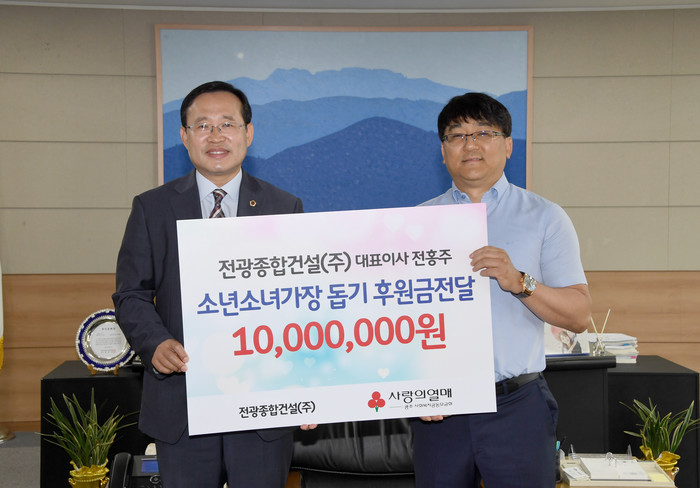 전광종합건설(주)는 코로나19 위기상황으로 인해 더욱 어려움을 겪고 있는 소년소녀가장을 돕고자 이 날 1,000만원을 사회복지공동모금회에 지정기탁 했다.