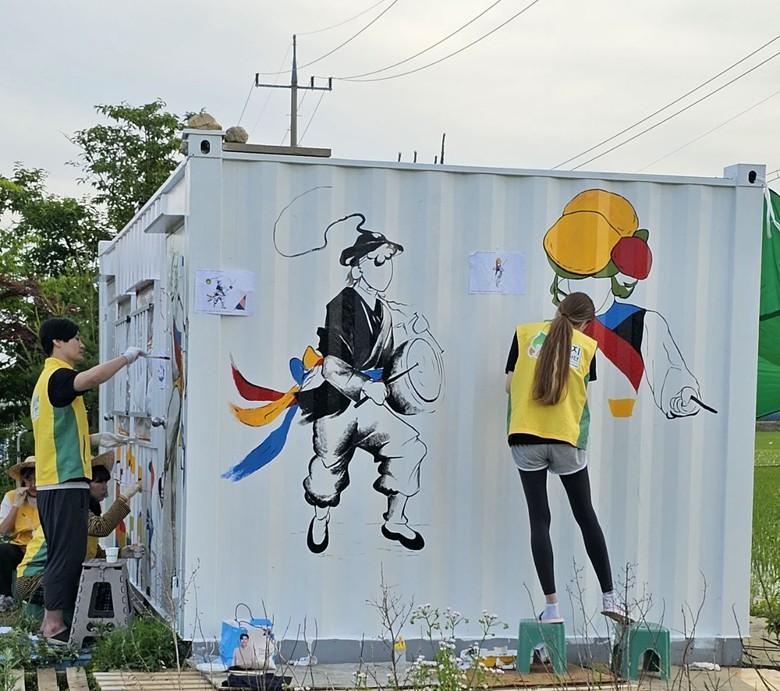 [세계타임즈 백진욱 기자] 신천지 자원봉사단 김포지부(지부장 이승민)는 봉성리에 위치한 김포시 농악보존회 (대표 장미화/(사)장애인멘토링 협회 지회장) 사무실로 사용중인 컨테이너에 지난 6월 1일 부터 8일까지 벽화봉사 '제 10회 담벼락 이야기' 를 실시했다.