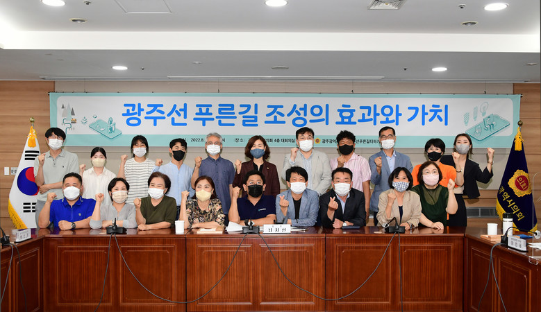 시의회와 광주선푸른길더하기시민회의가 공동으로 주최한 이날 토론회는 이경희 사무처장(광주환경운동연합)과 유창호 박사(전남대학교 지역개발연구소)가 공동 발제를 하고, 박수기 광주광역시의원, 김명수 전남대학교 사회학과 교수, 박홍근 포유건축사사무소 대표, 민현정 광주전남연구원 공동체연구실장이 토론에 참여했다.