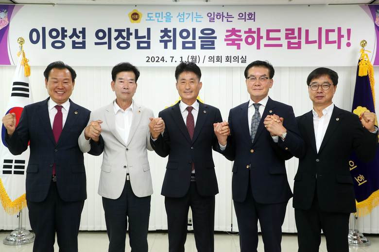 이 의장은 취임사에서 “12대 전반기 의정 성과를 바탕으로 후반기에는 한 단계 더 발전시켜 나가야 할 막중한 책임감을 느낀다”며 “도민께서 부여하신 집행부 견제와 감시라는 의회 본연의 역할에 충실하면서 지역 현안 해결에는 여야를 막론하고 힘을 모으겠다”고 했다.