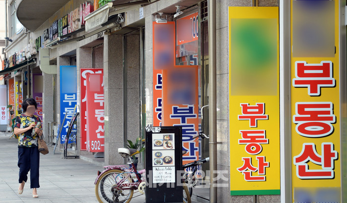 정부의 주택시장 안정화 방안으로 '투기과열지구'로 지정된 경기 과천 지역은 부동산 시장의 위축이 불가피할 전망이다. 투기과열지구 내 재건축 추진 단지에서는 재건축 조합원 지위를 양도할 수 없고, 조합원 분양 가구 수 1가구 제한 등의 규제도 추가로 가해진다. 사진은 3일 경기 과천 지역 부동산 밀집 상가의 모습. 2017.08.03