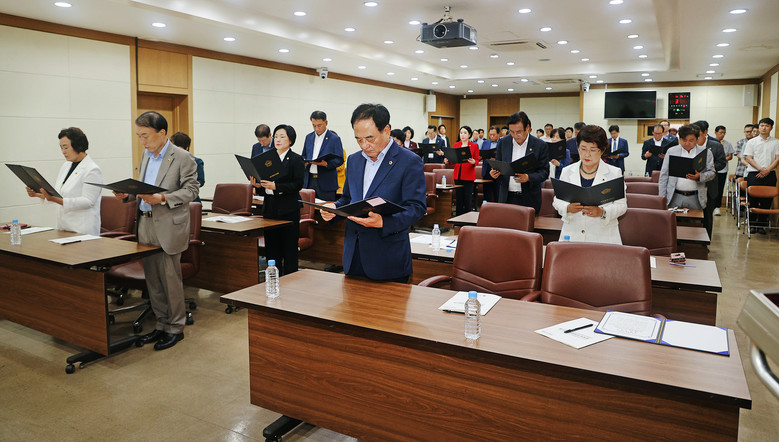 특강 시작 전, 대구시의원 전원은 5가지 청렴 실천 과제를 담은 청렴서약서에 서명한 후, 류종우 의원이 대표로 서약서를 낭독하며 청렴실천 의지를 다시 한번 되새겼다.