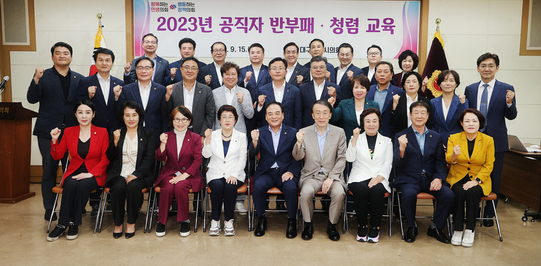 [대구 세계타임즈=한성국 기자] 대구시의회(의장 이만규)는 제303회 임시회 폐회 후 15일(금) 15:30 시의회 3층 회의실에서 ‘2023년 반부패 청렴교육’을 실시했다.