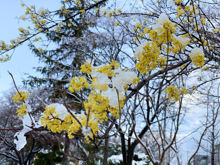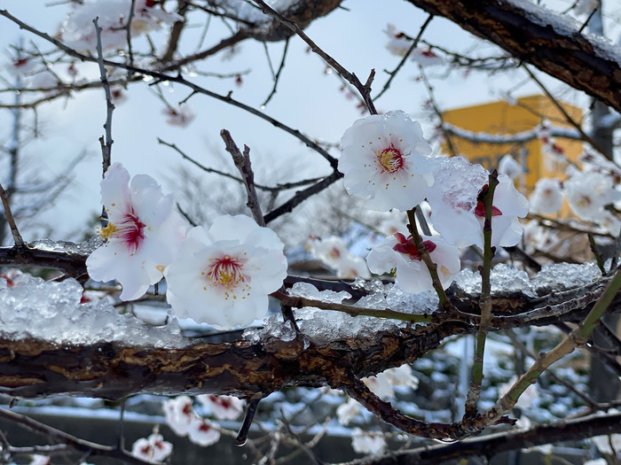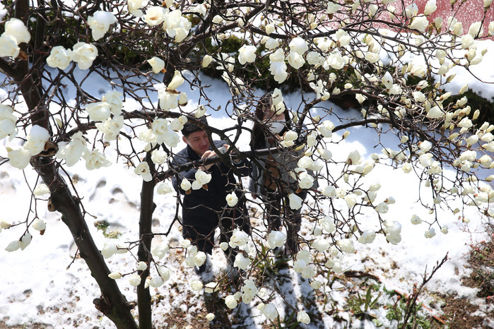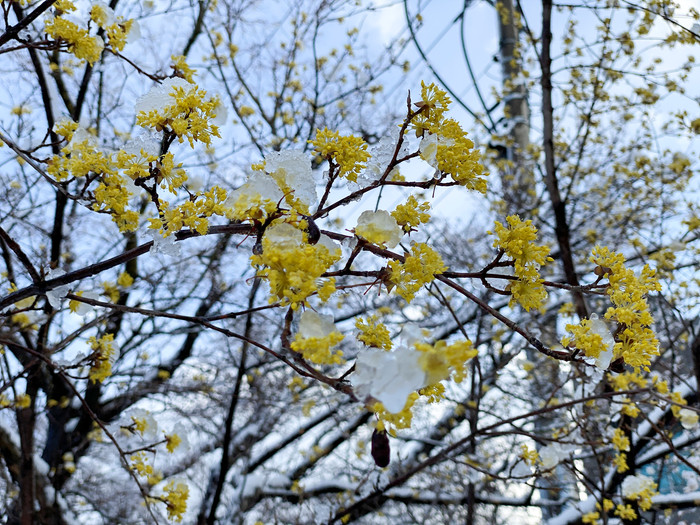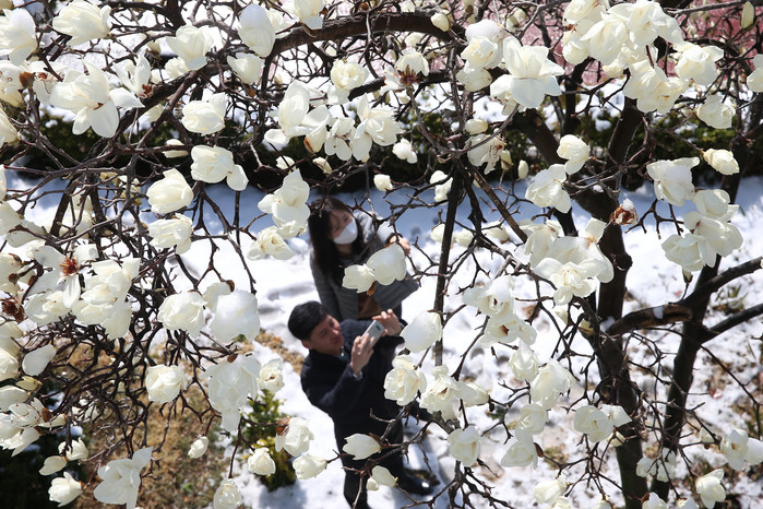 눈내린 봄꽃