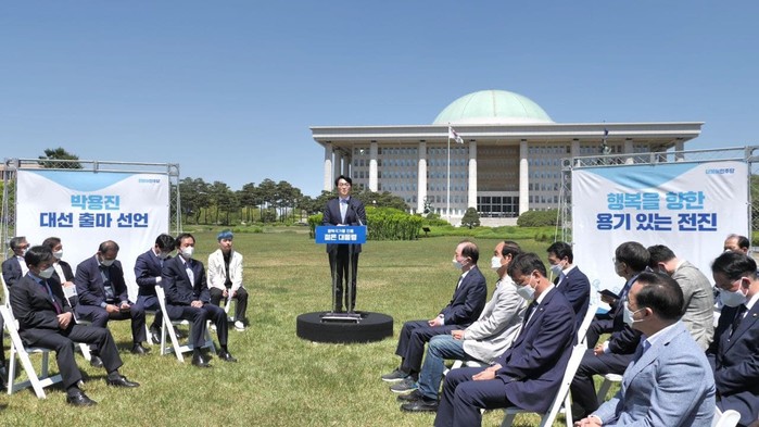박용진 의원(더불어민주당, 서울 강북을)은 오늘(9일) 오전 11시 국회 잔디광장에서 대선 출마 선언식을 갖고, “행복국가를 만드는 용기 있는 젊은 대통령이 되겠습니다”라고 밝혔다. 여권 대권주자 중에서는 첫 번째 출마 선언이다.