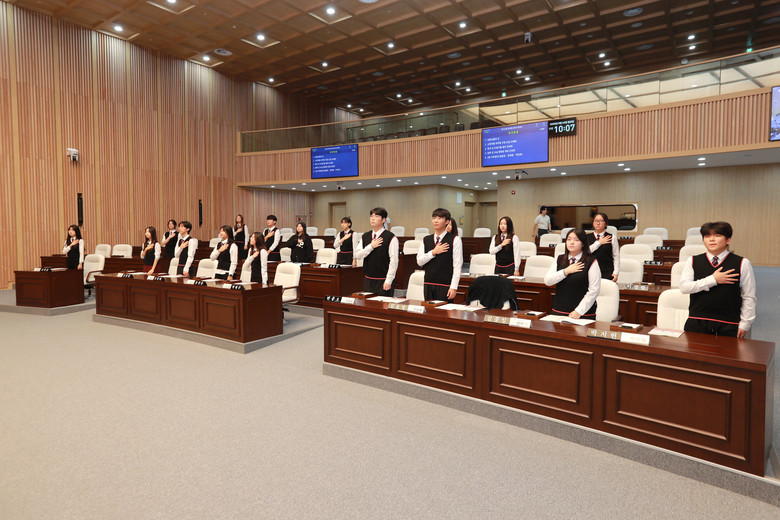 청소년 의회교실은 학생들이 1일 도의원이 되어 본회의장에서 의장 선거, 안건처리, 2분 자유발언 등 의정활동을 체험하는 프로그램이다.