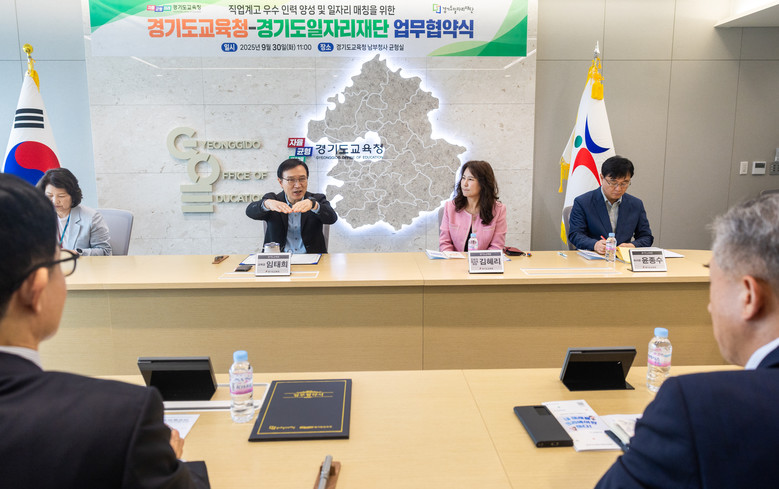 [경기도 세계타임즈=송민수 기자] 경기도교육청(교육감 임태희)이 30일 남부청사에서 경기도일자리재단과 도내 직업계고 학생의 성공적 사회 진출 및 일자리 창출을 위한 업무 협약을 체결했다.