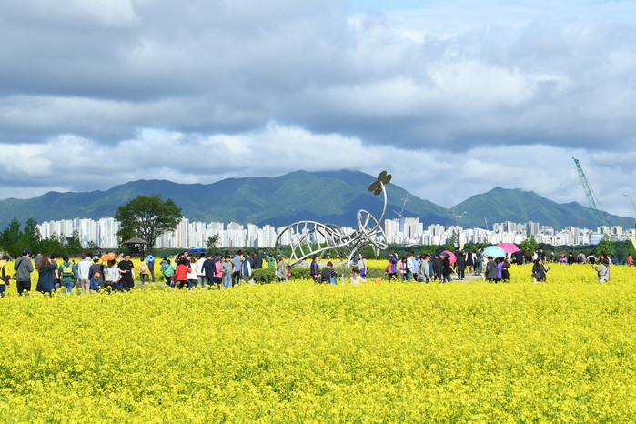 5월 4일(금)부터 6일(일)까지 구리한강시민공원에서 제18회 구리 유채꽃 축제가 열렸다. '꽃향기 한강에서 펼쳐지다'라는 주제로 열린 이번 축제에는 약 9만여 명의 관광객이 몰려 큰 성황을 이뤘다.