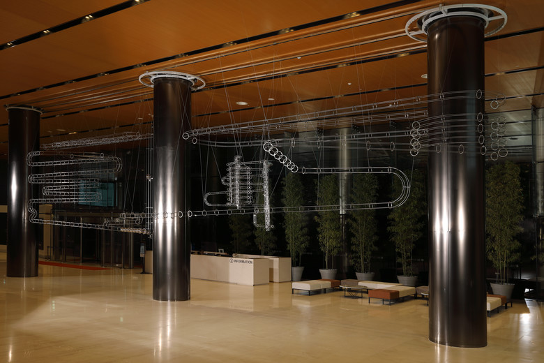 이창운 작가는 움직임을 시각적으로 구현하는데 관심을 가지고, 스테인리스 스틸 레일로 제작된 거대한 키네틱 설치 작업을 해왔다.