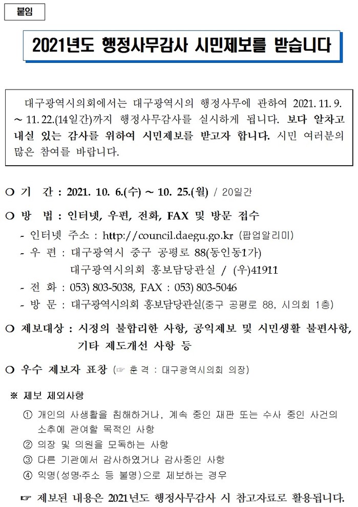 붙임 : 2021년도 행정사무감사 시민제보 안내문