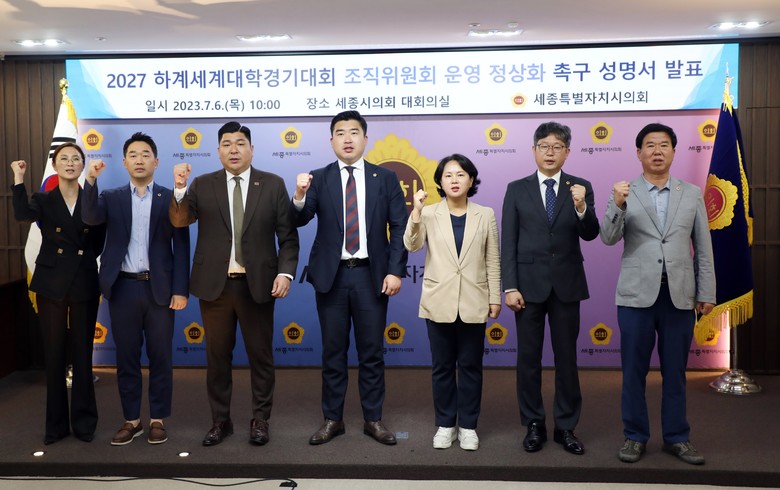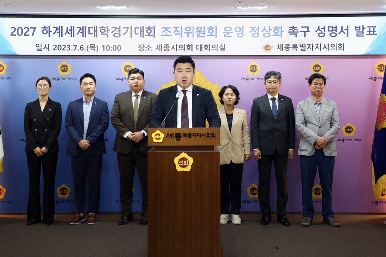 [세종 세계타임즈=이채봉 기자] 세종특별자치시의회 2027 하계세계대학경기대회 추진 특별위원회(위원장 김현미)는 “2027 충청권 하계세계대학경기대회 조직위원회 운영 정상화를 촉구하는 성명서”를 발표했다.