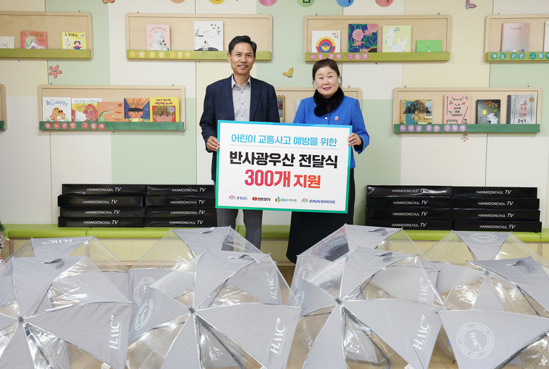 이번 기부는 지난달 21일 도청 접견실서 가진 교통안전용품 기탁식에서 한 변호사가 김태흠 지사에게 반사광 우산을 추가로 기부하겠다는 뜻을 밝히며 성사됐다.
