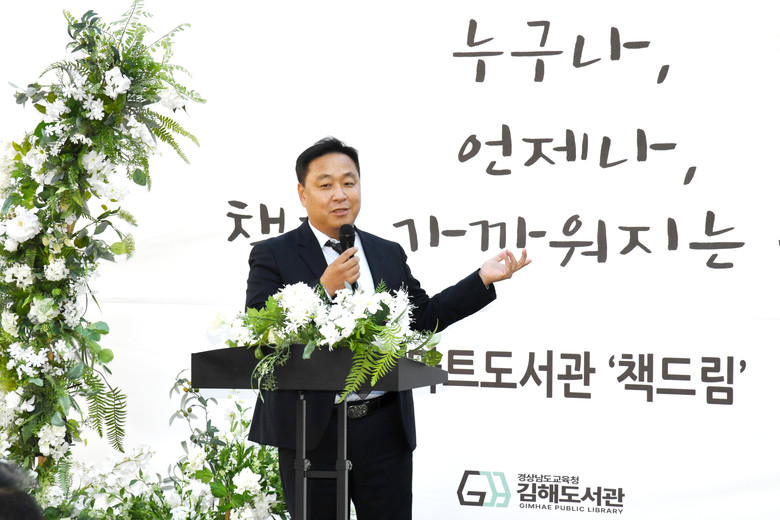 [경남 세계타임즈=최성룡 기자] 경남도의회 교육위원회 손덕상 도의원(더불어민주당, 김해 8)은 28일 오후 2시 김해 장유 모산공원 내에 설치된 김해 무인 스마트도서관 “책드림”의 개관식에 참석, “이번 도서관의 개관을 계기로 장유에 새로운 독서문화가 확산되길 기대한다”며, “장유 주민들의 많은 이용을 부탁 드린다”고 말했다.