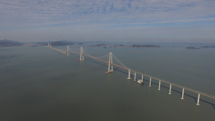 사진설명 : 대림산업이 준공한 전남 신안군 천사대교의 현수교 구간 전경