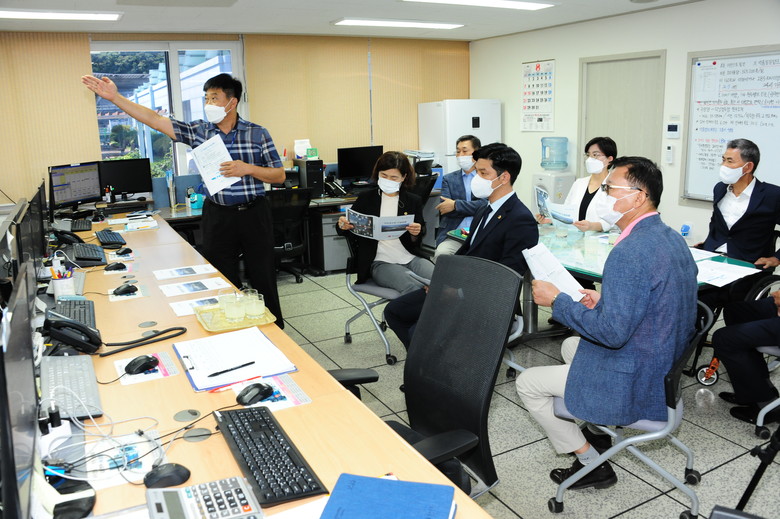 이후 용연정수사업소로 이동하여 고도정수처리 수돗물 생산공정 시설 운영현황을 청취하고 시설을 점검하였다.