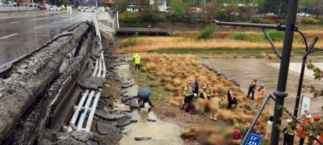 이 때문에 당시 빗속에 피해자들은 교각이 무너지면서 보행로 쪽으로 추락했다. 무너진 보행로는 전체가 아닌 일부분으로 교량 가드레일과 이정표 등이 교각 아래로 쏟아져 내렸다. 차로는 붕괴되지 않았다.