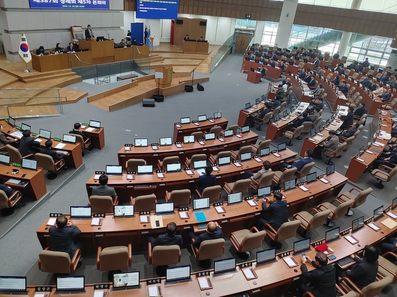 | ▲경기도의회 제387회 정례회 제5차 본회의 진행 모습. |