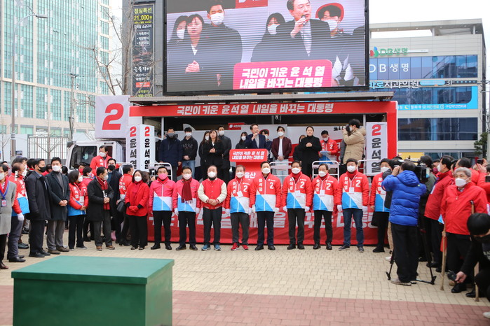 힌편 김해 유세현장에서는 ‘1조6000억원 개발특혜, 인허가 결재권자 주범 그분 구속하라', '대장동 특검 촉구 천만인 서명운동 김해본부’대장동 특검’등 촉구하는 서명운동이 진행됐다.