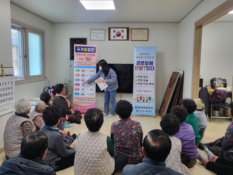 [칠곡군 세계타임즈=한윤석 기자] 칠곡군보건소는 지난 3월 7일부터 지역 어르신들의 건강증진을 위해 「우리동네 경로당」을 운영하며 주 1회 찾아가는 한방진료 서비스를 제공하고 있다.