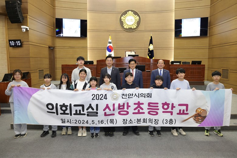 신방초 어린이들은 이날 의회교실에서 ‘일회용품 및 종이 없는 날 제정에 관한 조례’와 ‘학교 현관 학생 의견판 설치에 관한 건의문’을 본회의에 상정하여 의결하였고, ‘쉬는 시간을 20분으로 연장하자’와 ‘학교에 점자 보도블록과 점자 안내 표지판을 많이 설치하자’라는 주제로 2분 발언을 였다.
