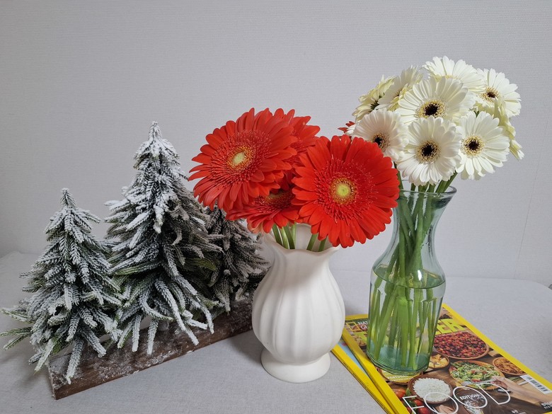 미니 거베라 수요 증가로 국산 우수 품종 개발 필요성이 높아지자, 경남농업기술원은 실용형 신품종 ‘스노우벨’과 ‘산타클로스’를 육성했다.