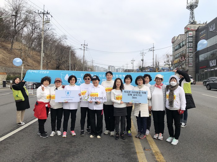 굿네이버스에서는 2011년부터 매년 ‘굿워터 프로젝트’ 캠페인을 실시하고 있고, 작년부터 인천 국제하프마라톤대회에서 시민들을 대상으로 관련 캠페인을 진행하고 있다. 굿워터 프로젝트를 통해 도움이 필요한 국가에 식수시설 설치 및 위생교육 등을 진행하고 식수위생위원회를 조직해 지역 주민들이 식수시설을 직접 관리할 수 있도록 돕고 있다.