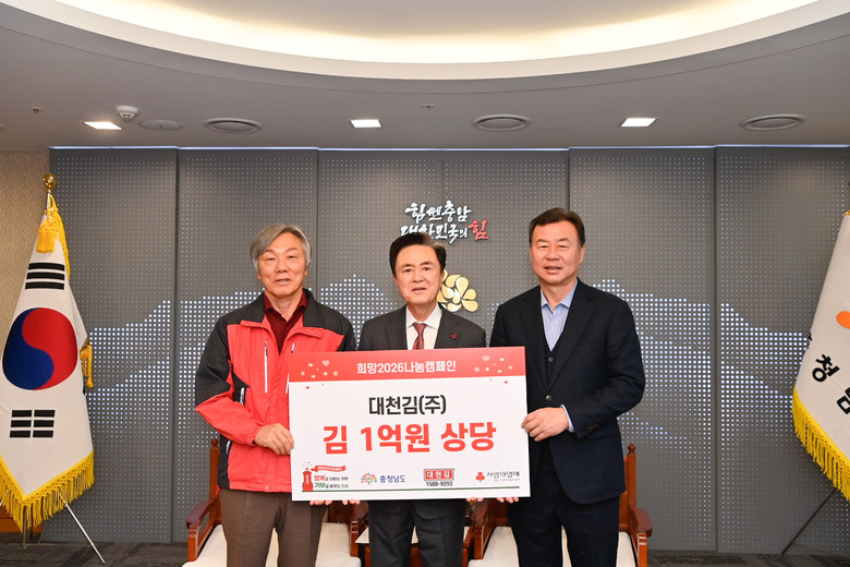 이날 도지사 외부접견실에서 열린 전달식에는 김태흠 지사를 비롯해 최민순 대천김 총괄대표, 성우종 충남사회복지공동모금회장 등이 참석해 나눔의 의미를 함께했다.