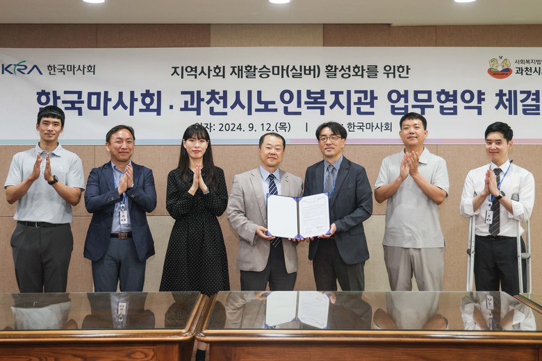 [세계타임즈 = 송민수 기자] 한국마사회(회장 정기환)는 지난 12일, 렛츠런파크 서울에서 과천시노인복지관(관장 유호근)과 지역사회 재활승마 활성화를 위한 업무협약을 체결했다고 밝혔다.