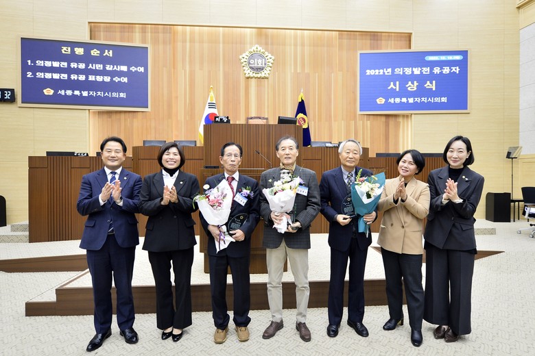 한편, 세종시의회는 폐회 직후 의정발전 유공 시상식을 개최하고 한 해 의정 발전에 기여한 지역 주민 28명과 관계기관 공무원 5명에게 각각 감사패와 표창장을 수여했다.