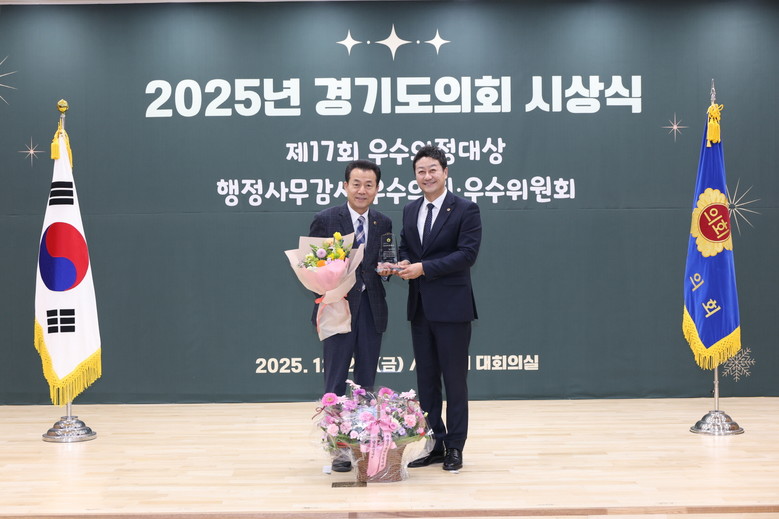 [경기도 세계타임즈=송민수 기자] 경기도의회 김성수 의원(더불어민주당, 안양1)이 26일(금) 경기도의회 대회의실에서 열린 대한민국시도의회의장협의회 주관 ‘제17회 우수의정대상’ 시상식에서 우수의정대상을 수상하며 임기 내내 쉼 없이 펼쳐온 도민 중심의 열정적인 의정활동 공로를 인정받았다.