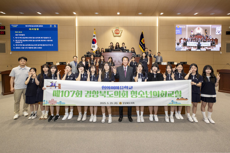 [경북 세계타임즈=한윤석 기자] 경상북도의회는 지난 4월 1일부터 시행중인 2025년도 청소년의회교실 107번째로 〔김천 성의여자중학교편〕을 5월 29일(목) 도의회 본회의장에서 학생 27명과 교사, 도의회 및 도교육청 관계자 등 40여명이 참석한 가운데 실제 도의회 본회의 진행방식과 같은 절차로 의장과 의원의 역할을 맡아 지방의회운영의 전 과정을 체험하는 시간을 가졌다.