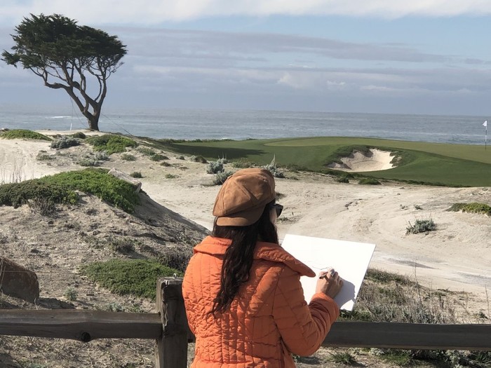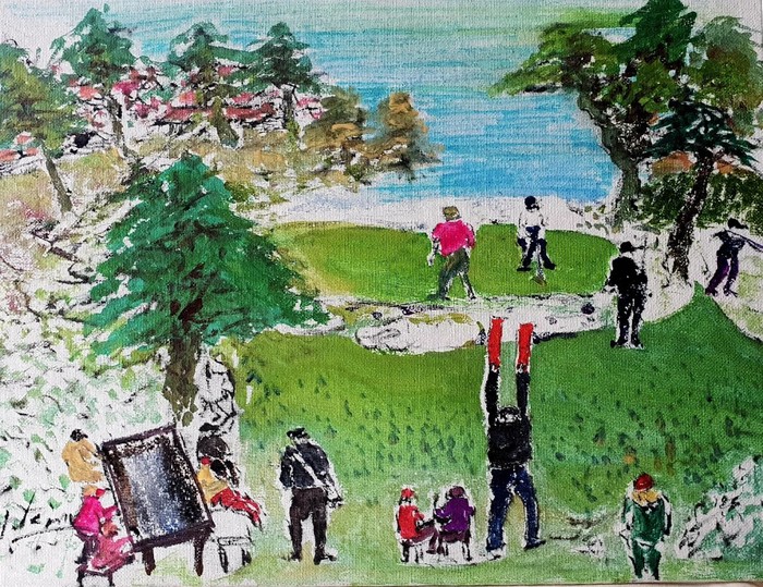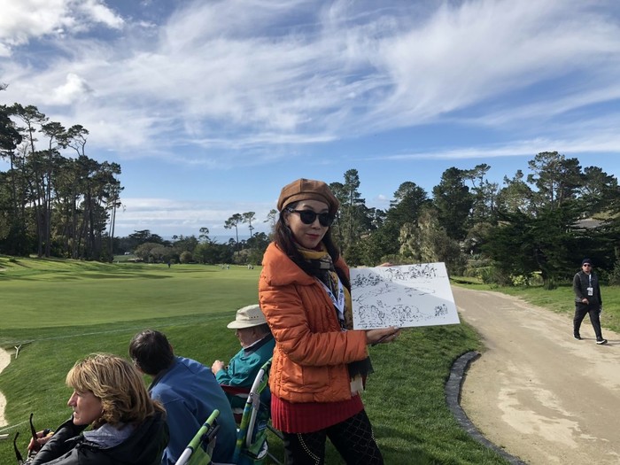 이번 미PGA대회에는 한국 프로선수 강성훈 김시우 배상문 최호성 등 9명이 출전했고, 필 미켈슨의 우승으로 막을 내렸다. 하지만 3일간 진행된 프로암 대회 초청의 경우, 화가로서는 그가 유일하다. 태평양 연안에 위치한 패블비치CC는 우선 세계적으로 아름답기로 명성높다. 또 골프장 곳곳에 대저택이 자리잡아 그야말로 부호들이 자주 출입하는 골프장으로 알려져 있다.