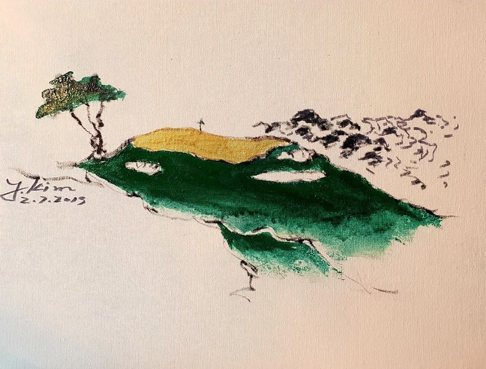 골프장 곳곳을 누비면서 많은 관계자들을 만나고 스케치했던 그는 “이번 대회에 작품 하나를 기부했으며, 1억을 기부한 미국인 부호에게 돌아간 것으로 들었다”고 했다. 5번홀을 담은 ‘드림’이었다.