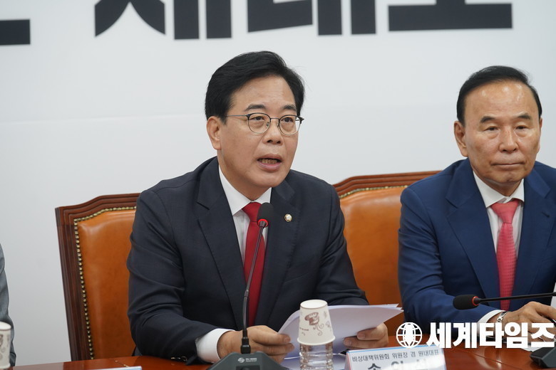 국민의힘 '송언석' 비상대책위원장 겸 원내대표가 21일 국회에서 열린 비상대책위원회의에서 발언하고 있다.