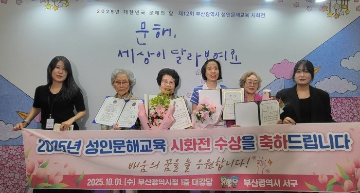 [서구 세계타임즈=이용우 기자] 부산 서구는 지난 1일 열린 ‘2025년 제12회 부산광역시 성인문해교육 시화전’에서 관내 학습자 5명이 최우수상과 특별상 등을 수상했다고 밝혔다.