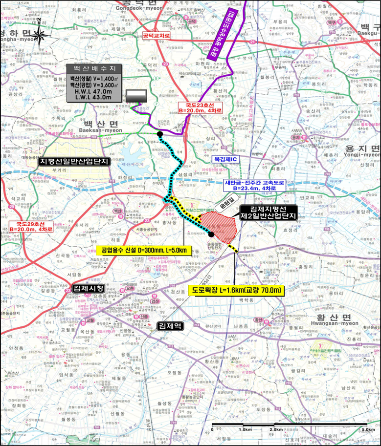 진입도로가 완성되면 산업단지 진·출입 동선이 개선될 뿐만 아니라, 백산면·용지면·순동 일원과 연계되는 권역 전체의 교통 소통에도 큰 도움이 될 것으로 전망된다.