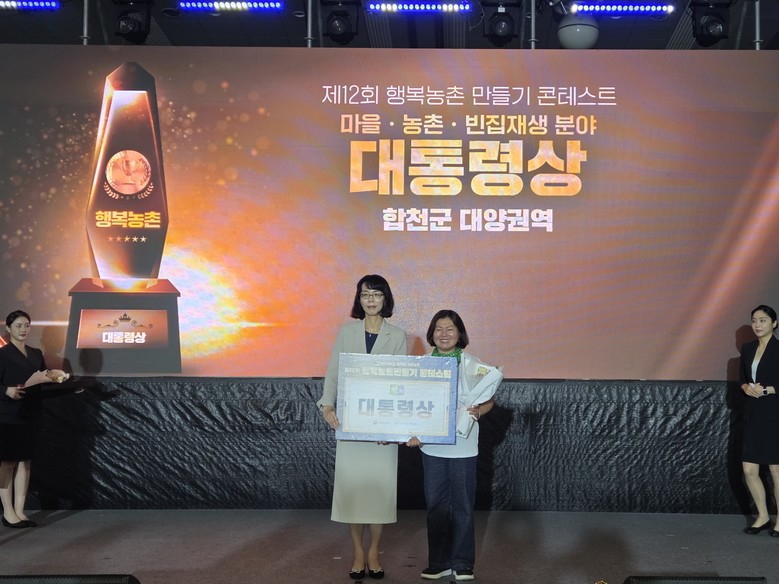 행복농촌만들기 대상(대통령상)과 마을만들기 분야 금상을 거둔 합천군 대양권역은 지역에서 생산된 친환경 농산물을 활용한 체험 프로그램과 농촌관광을 활성화하고 수익금의 약 20%를 마을 공동식사, 평생학습, 복지 서비스 등에 재투자하는 지속 가능한 공동체 운영 모델을 실현하여 높은 평가를 받았다.