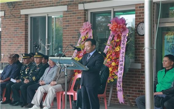 | ▲경기도 궁도협회 박민기 회장 축사 모습 |