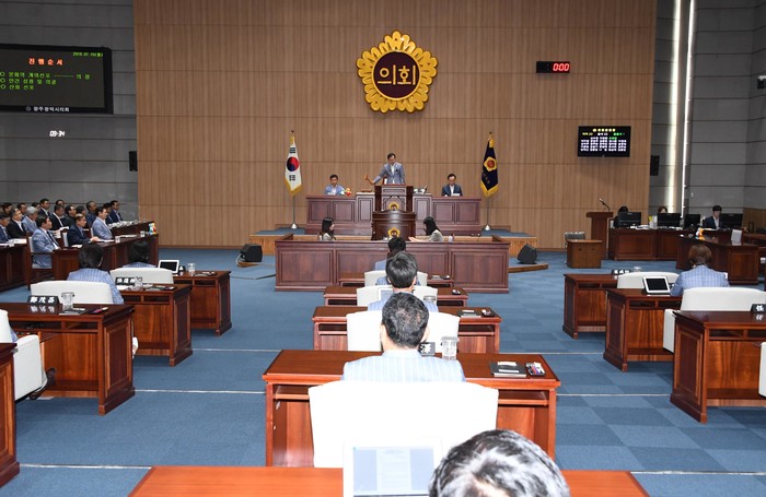 [광주=세계타임즈 손권일 기자] 광주광역시의회(의장 김동찬)는 7월 15일 오전 9시 30분 시의회 4층 본회의장에서 제281회 임시회 제1차 본회의를 개회했다.
