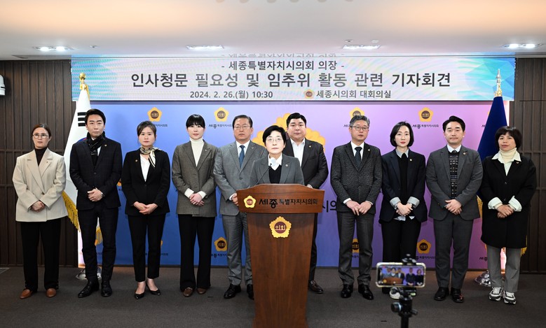 또한 “최민호 시장은 부실 검증에 대한 책임을 통감하고, 세종 시민과 시의회를 상대로 공개 사과를 해야 한다”며 “검증자료를 임원추천위원들에게 제공하지 않은 책임자와 실무자 전원의 감사를 요구하고, 제공하지도 않은 자료를 제공한 것처럼 시민의 눈을 가린 집행부에도 책임을 반드시 물을 것”이라고 밝혔다.