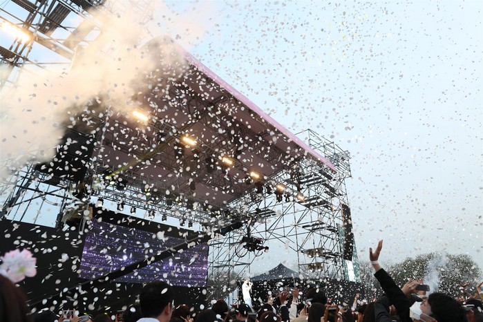 흩날리는 벚꽃을 즐기며 유명 뮤지션을 만나고 아름다운 불꽃도 즐길 수 있는 다채로운 프로그램이 인기의 비결이다.
